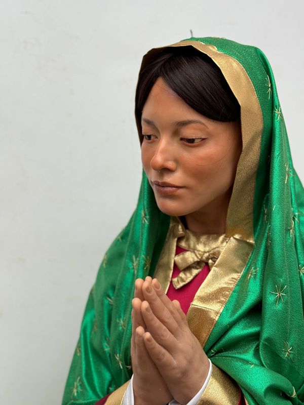 Figuras en cera y resina cera, con prótesis oculares y cabello natural, usando técnicas de mascarilla y life cast